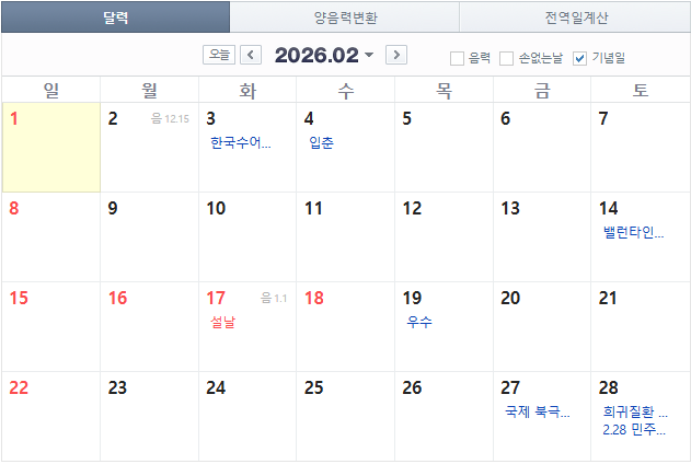 | 3월 | 3/1(일), 3/2(월) | 3·1절 / 대체 | 앞 금요일(2/27) 연차 1일로 4일 블록 |