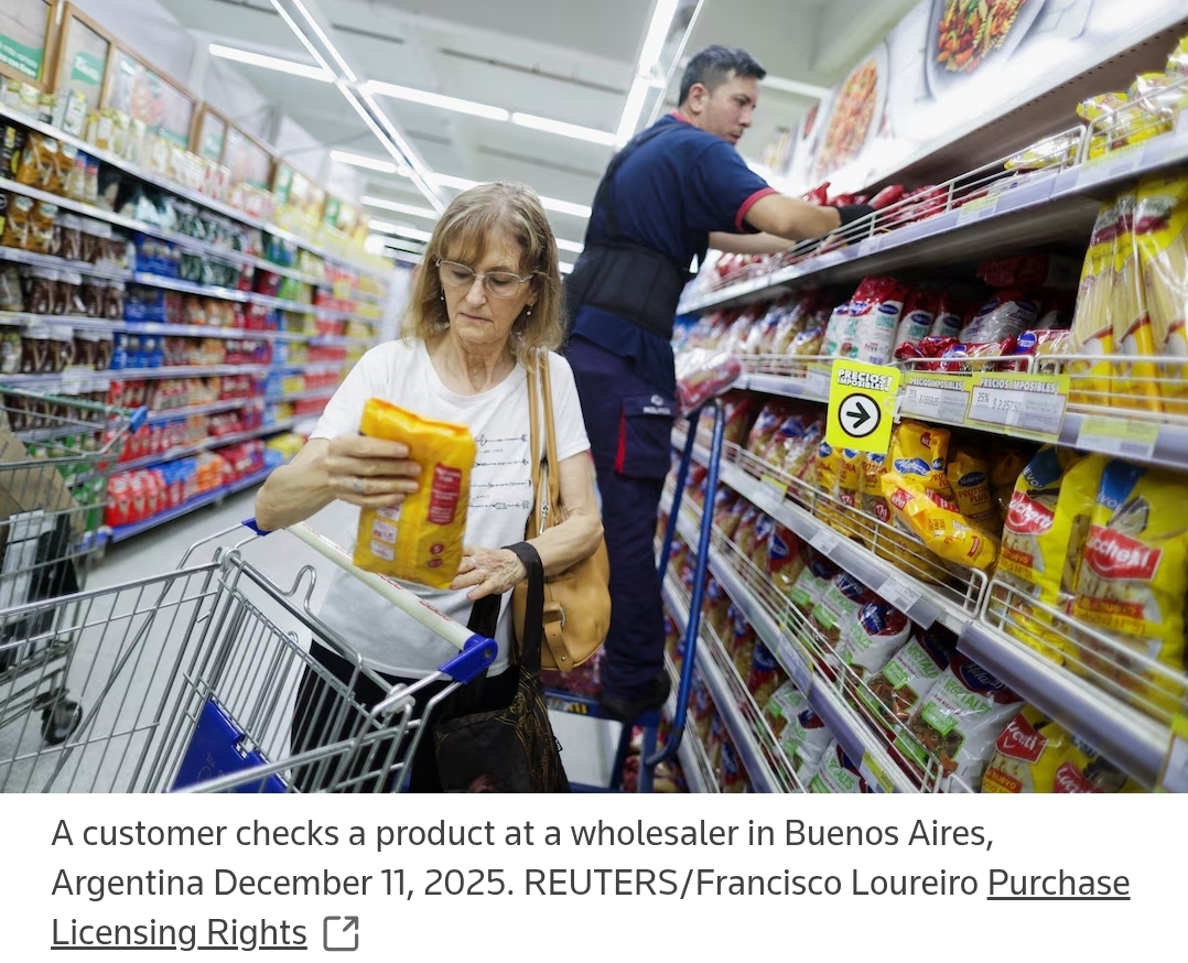 • 2025년 연간 물가가 **7년래 최저권(약 31%)**으로 추정됐고, 2026년은 평균 25% 안팎 예상이라는 컨센서스가 제시됐습니다. 재정긴축·수입개방·환율관리(크롤링/밴드)·IMF 프로그램 준칙이 앵커 역할. Reuters(연간 전망): https://www.reuters.com/world/americas/argentina-inflation-is-forecast-have-ended-2025-more-than-seven-year-low-2026-01-12/ , 경기전망·물가 경로: https://www.reuters.com/world/americas/argentina-growth-outlook-stable-much-depends-potential-debt-comeback-2026-01-16/