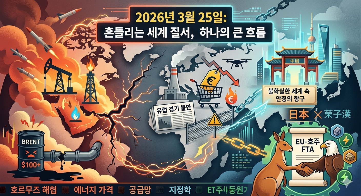 2026년 3월 25일의 세계는 지금, 전쟁·에너지·물가·성장·공급망·외교가 동시에 묶여 움직이는 시대를 아주 선명하게 보여주고 있다. 그리고 그 변화는 오늘 하루로 끝나지 않을 가능성이 크다.